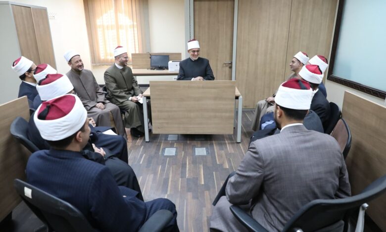 في إطار حرص فضيلته على متابعة سير العمل داخل الإدارات المختلفة بدار الإفتاء المصرية، عقد فضيلة أ.د. نظير محمد عياد، مفتي الجمهورية، لقاءً مع أمناء الفتوى والباحثين بإدارتي الفروع الفقهية وفتاوى المحاكم، للوقوف على تفاصيل الأداء اليومي، والاطمئنان على سير العمل وفق أعلى معايير الدقة والانضباط، حيث ناقش فضيلته آليات تطوير الأداء، بما يسهم في الارتقاء بمنظومة العمل الإفتائي.