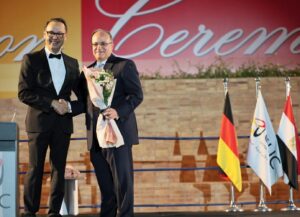 وألقى الدكتور علي الغمراوي كلمة خلال الحفل تحت عنوان “شراكة لبناء المستقبل: الإحتفاء بثمار التعاون المصري الألماني”، أكد فيها أن الجامعة الألمانية بالقاهرة تعد نموذجاً متميزاً للتعاون بين مصر وألمانيا، ومنارة علمية تجمع بين الدقة البحثية الألمانية والإبداع المصري، ما يسهم في تخريج كوادر قادرة على دعم مسيرة التنمية الوطنية.