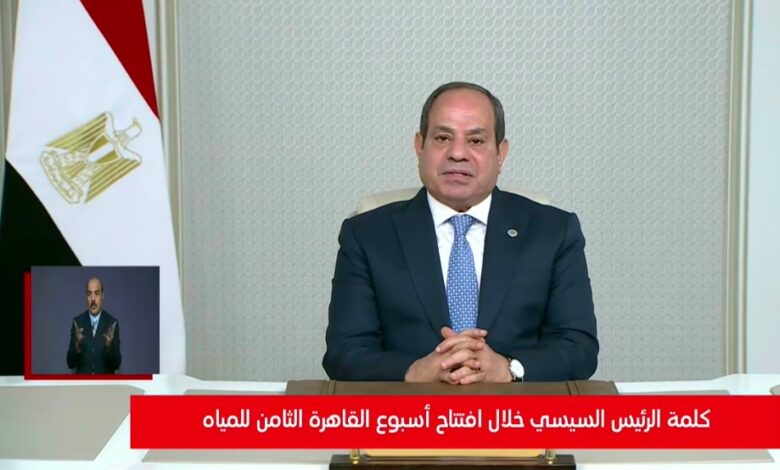 ألقى الرئيس عبد الفتاح السيسي، كلمة مُسجلة، خلال الجلسة الافتتاحية لأسبوع القاهرة الثامن للمياه، الذي انطلق اليوم تحت شعار “الحلول المبتكرة، من أجل القدرة على الصمود أمام التغيرات المناخية، واستدامة الموارد المائية”، وذلك بمشاركة واسعة من وزراء، وصناع القرار، وخبراء دوليين، وممثلي المنظمات الدولية، والقطاع الخاص، والمجتمع المدني. وفيما يلي نص كلمة الرئيس: