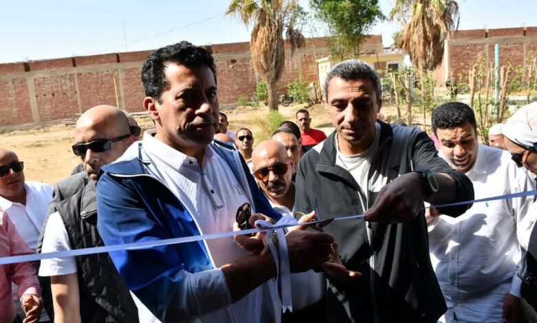 وزير الشباب والرياضة ومحافظ السويس يفتتحان قاعة تخاطب وملعب أكريليك بمركز شباب الجناين