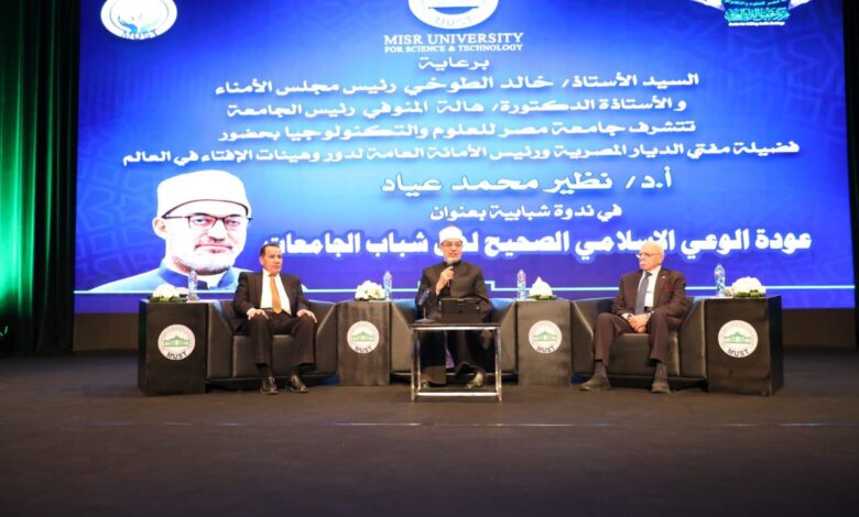 واختتمت الندوة بالتأكيد على ضرورة استمرار اللقاءات العلمية والفكرية التي تعزز وعي الشباب وتفتح لهم مسارات أعمق لفهم الدين والحياة وأن جامعة مصر للعلوم والتكنولوجيا وجامعة مصر الدولية تواصلان أداء دورهما في دعم الحوار العلمي الرصين الذي يؤهل الطلاب لقراءة الواقع وتحليل تحدياته بمنهج يجمع بين المعرفة والإيمان والمسؤولية