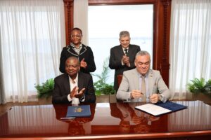 وقع مذكرة التفاهم، المهندس نشأت نصر الدين مدير إدارة التحركات، َوالسيد أندرياس كانيمي الرئيس التنفيذي لهيئة الموانئ الناميبية.