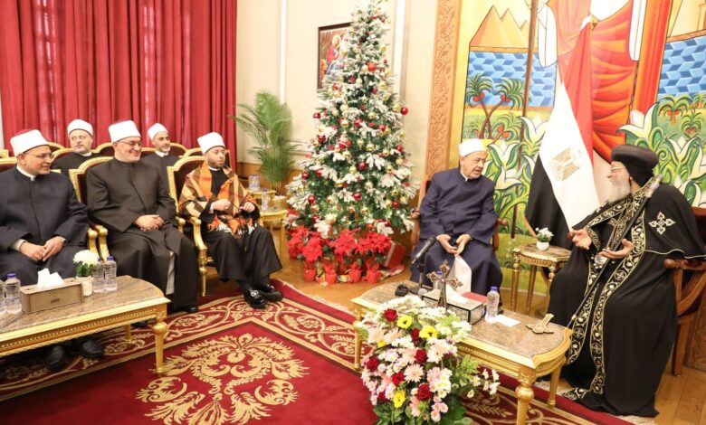بمشاركة شيخ الأزهر ووزير الأوقاف .. مفتي الجمهورية يزور البابا تواضروس الثاني ويهنئه والأخوة المسيحيين بعيد الميلاد المجيد