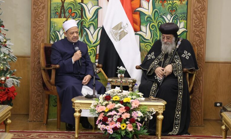 *شيخ الأزهر خلال تهنئة البابا تواضروس بعيد الميلاد: العالم فقد عقله وحكمته وهذا نذير خطير*