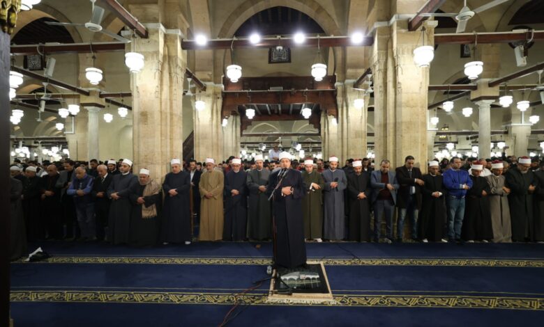 برواية حفص والدوري وقنبل وخلاد .. صلاتي العشاء والتراويح بالأزهر في الليلة العشرين من ليالي شهر رمضان