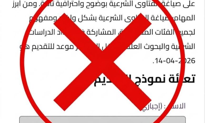 وأكدت دار الإفتاء المصرية، أن هذا الإعلان لا يمت للدار بصلة من قريب أو بعيد، ولم يتم نشره أو اعتماده من أي جهة رسمية تابعة لها، كما أن الجهات التي تقف وراءه تنتحل صفة الدار دون وجه حق.