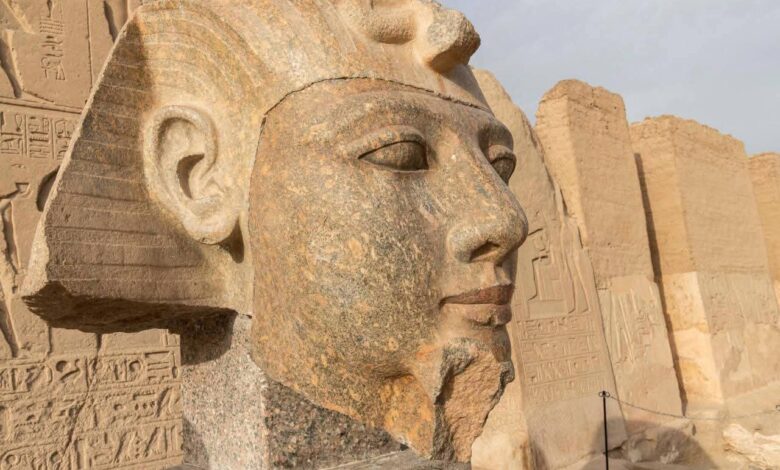 الإنتهاء من ترميم رأس تمثال من الجرانيت للملك رمسيس الثاني داخل معبده في أبيدوس