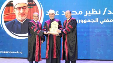 خلال كلمة فضيلته في احتفال جامعة المنصورة بعيد العلم .. مفتي الجمهورية يؤكد: العلاقة بين العلم والدين في الإسلام علاقة تكامل وتآزر